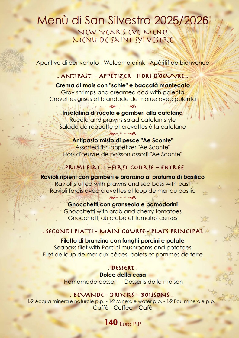 In un contesto tipicamente veneziano e nel rispetto delle sue antiche tradizioni di ospitalità, l’osteria “Ae Sconte”, vi aspetta per offrirvi un assaggio dei più tipici piatti veneziani.